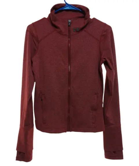 Under Armour Studio Lux FIT chaqueta deportiva para mujer color rojo talla Small. Diseño elegante para tus actividades deportiva y uso cotidiano.Nueva sin etiquetasDos bolsillos laterales con cremallera y las insignias de UA, diseño ajustable con cierre en mangas y guantes integrados.Materiales: 90% poliéster y 10% elastano.Medidas: 56 cm alto, 70 cm de ancho espalda-pecho, 74 cm de ancho en cintura, 63 cm de largo en mangas y 9 cm en altura de cuello.