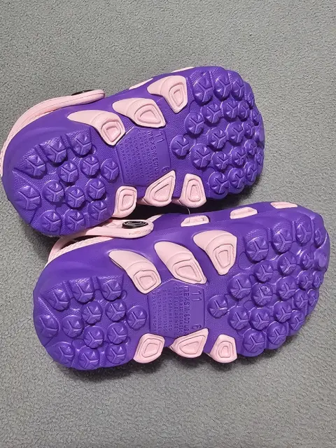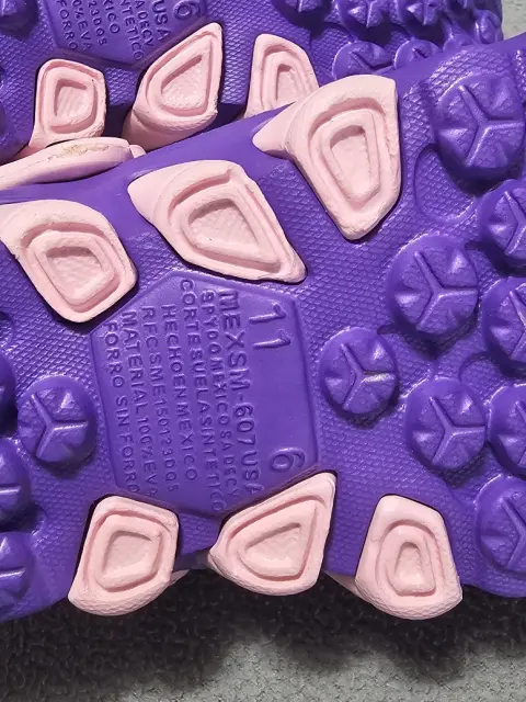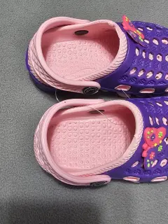 Hermosas sandalias de suela EVA ultra cómodas y suaves en color morado y rosa con detalle de mariposas 🦋.Tamaño: 14 cm de suela.
