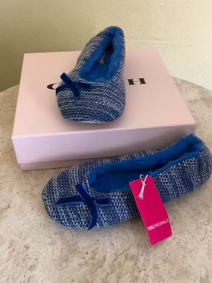 Pantuflas azules , muy bonitas , nuevas con etiqueta 🏷. Número 22 -23. Tiene en la parte interna peluche para ser más cómodas . Nuevas sin detalles