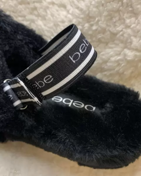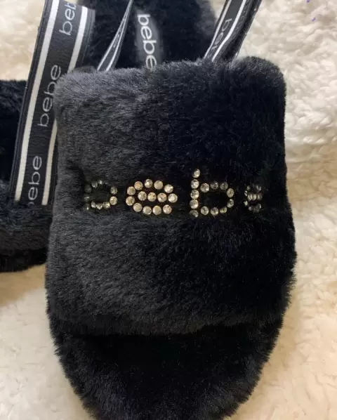Pantuflas BEBE. Pantuflas de peluche con el logo en pedrería, y grabando en el resorte, nuevas, con etiqueta 🏷, originales 🇺🇸, número 6 mexico