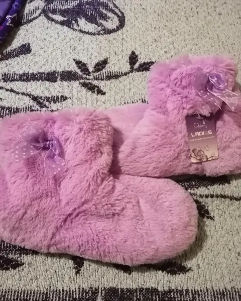 Pantuflas de bota con peluche. Bonitas pantuflas lilas con forro de peluche super comodas talla L 4/5 completamente nuevas.