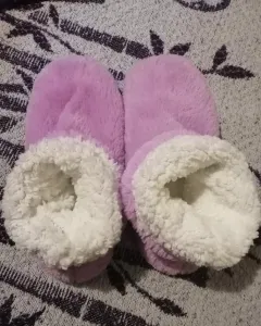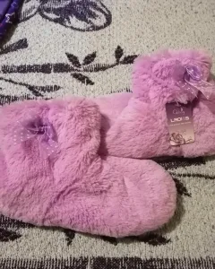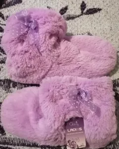 Bonitas pantuflas lilas con forro de peluche super comodas talla L 4/5 completamente nuevas.