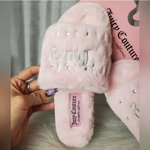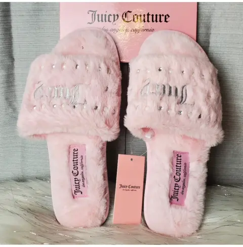 Pantuflas rosas de peluchito super suave. Marca Juicy Couture, con aplicación de pedrería y perlitas. Totalmente nuevas. Escucho ofertas razonables. Dan del 23.5 al 24.5