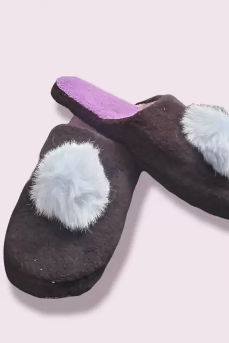 Pantuflas negras con pompon azul. HERMOSAS PANTUFLAS TALLA 7MARCA KIRACON POMPONES