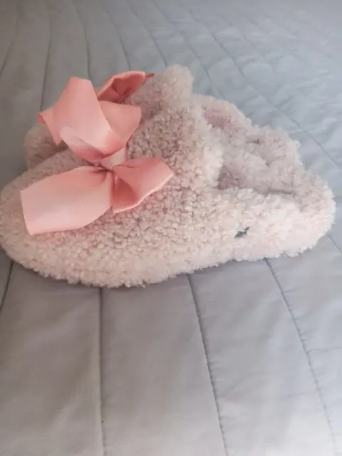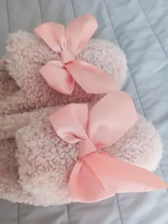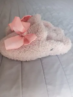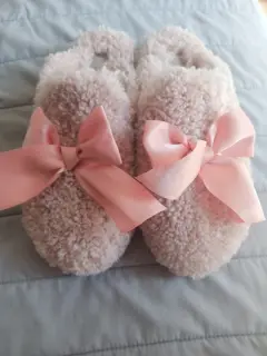 Súper hermosas pantuflas color rosa bebé, tipo borrego, con moño al frente, con plataforma, muy poco uso en buen estado. Talla 6 mx.