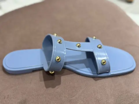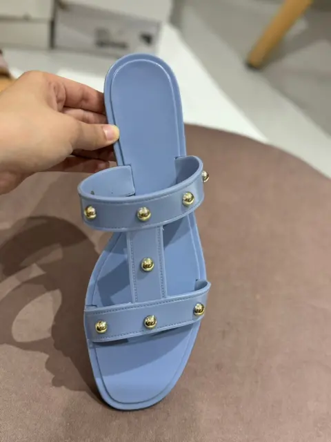 Sandalias color azul con detalles dorados Ideales para un día de playa