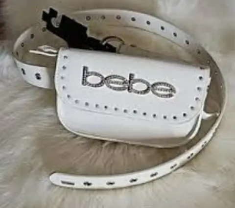 cinto con cartera bebe. Cinto con cartera bebe color blanco con remaches en la cartera, pedrieria en la hebilla
