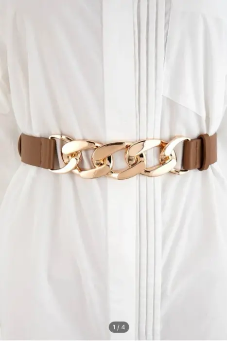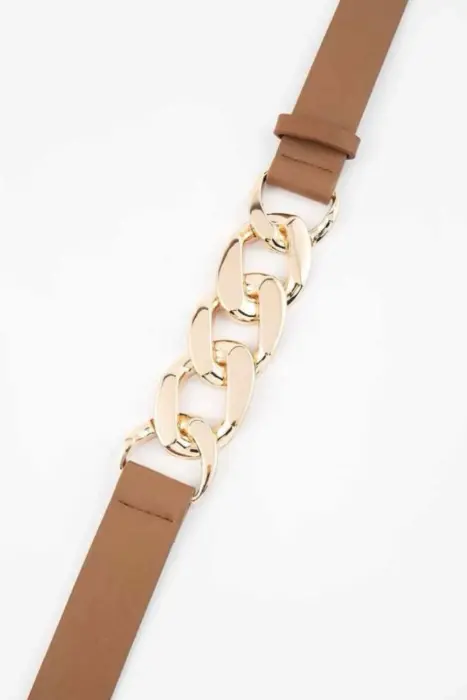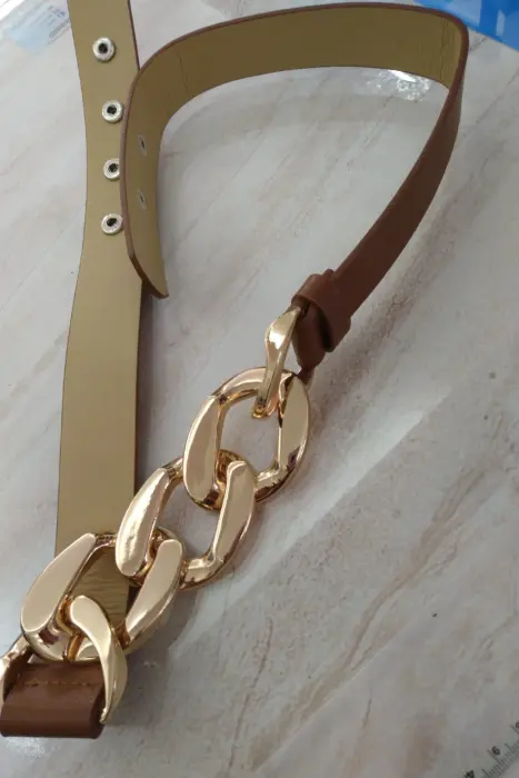 CINTURON CAFE. Cinturón color café con detalle al frente en color doradounitalla