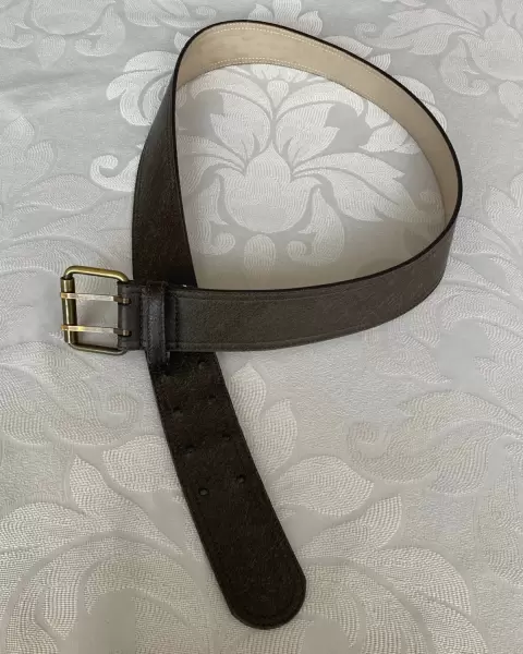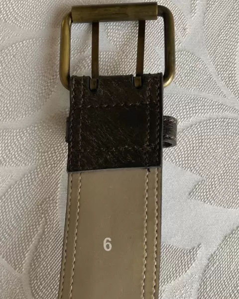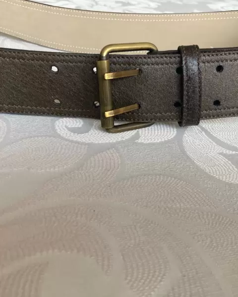 Hermoso cinturón color café de 3.5 Cm de ancho, largo 96 Cm. Tío piel el exterior e interior tipo gamuza