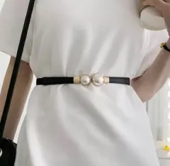 Cinturón elástico color negro con hebilla de perla Unitalla nuevo medidas : 1.5 cm de ancho y 65cm largo