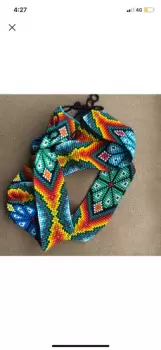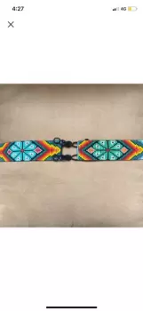 Cinturón de chakiras hecho a mano. Cinturón de chakiras de colores hecho a mano, tiene varias medidas para abrocharse, mide 3.7 cm de ancho X 89.5cm de largo, al primer ojal donde se puede abrochar mide 85 cm, al segundo 87xm, al tercero 89 cm, y en dónde tiene la hilera de los 4 ojales mide de 89 cm en primero, al último 94 cm