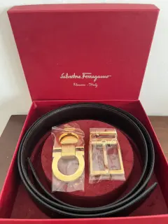 Cinturón Ferragamo. Cinturón 4 en 1 doble hebilla y piel doble vista negro y café en caja original talla 115 cm y se puede ajustar (recortar ) a la medida