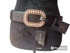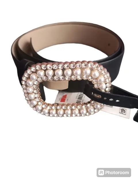 CINTURON MARCA INC TALLA MEDIANA. HERMOSO CINTURON NEGRO, TALLA M, MIDE 102 CM ,TRAE PERLAS DE IMITACIÓN, CUBOS DE ZIRCONIA,MARCA INC