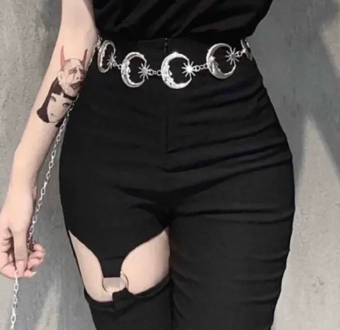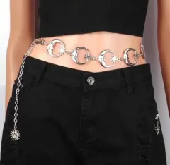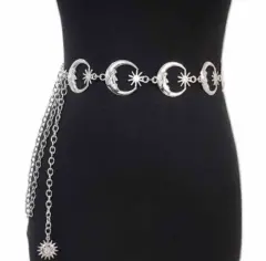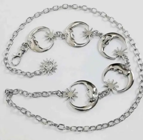 Cinturón metálico color plata con decoraciones de lunas 🌜 medidas : 110 cm de largo nuevo sin detalles