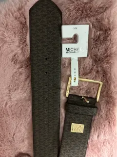 Cinturón Michael Kors. Cinturón Michael Kors, color café con el monogram MK, talla S/M con Banda elástica (ideal para ajustarse), mide de ancho 5.5 cm