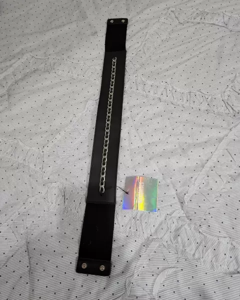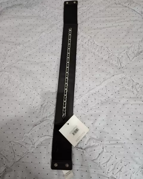 Cinturón negro con cadena de adorno en medio y a lo largo del Cinturón Se abrocha con broches de presión TALLA S/MNUEVO CON ETIQUETA