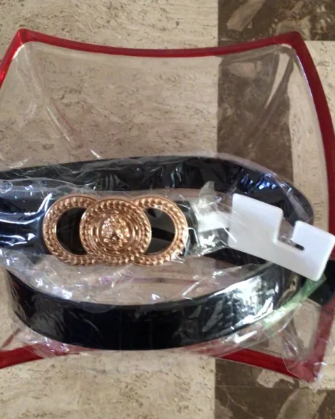 Cinturón negro de material cuerina imitación cocodrilo. Con hermosa hebilla circular dorada. Es unitalla mide de ancho 3cm y de largo 110cm.