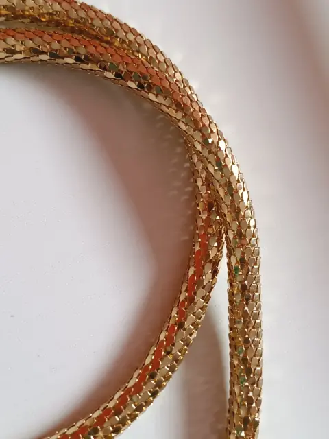 Cinturón vintage de mesh. Cinturón de serpiente con escamas de mesh en tono dorado marca DL Auld. Vintage de los años 80, ojos de pedrería color vino. Estos cinturones únicos son muy codiciados y coleccionables. Está en excelentes condiciones y mide aproximadamente 87.5cm excluyendo la cabeza y la cola. Yo diría que la talla es pequeña, pero podría usarse en una XS, S y posiblemente una M,es ajustable.