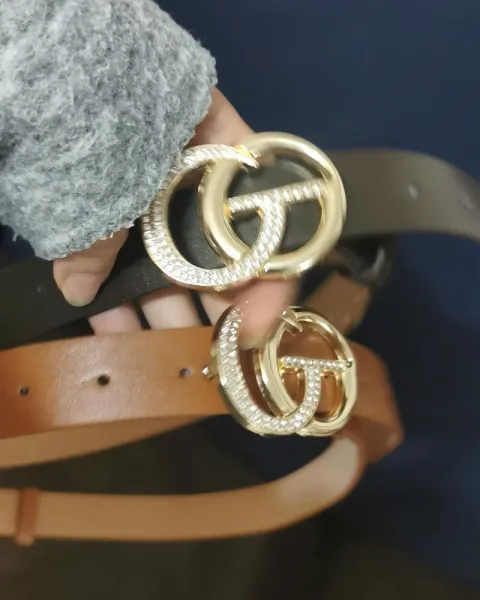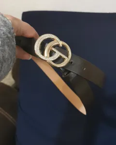 Juego de cinturones negro y marrón con hebilla dorada con piedritas brillantes