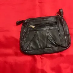 Bolsita de piel, negra. Hermosa y práctica bolsa sin asas, 17X11X3 cm, 100% piel, sin detalles