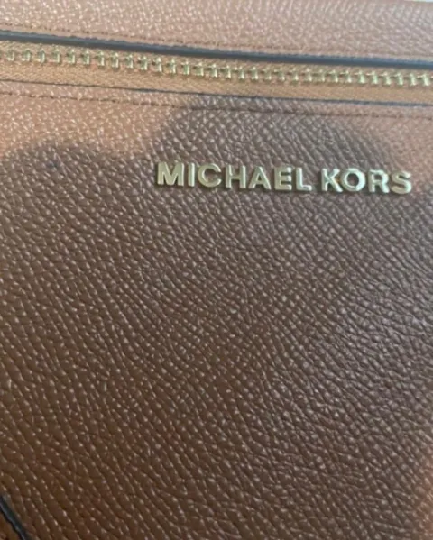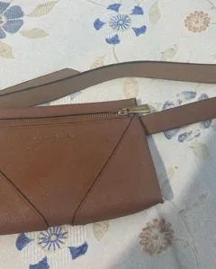 Bolso tipo clutch con correa para colgarse Michael Kors color camel.Medidas: 22x14x2.5 cm