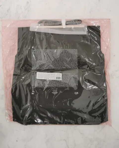 Bolso nuevo, aun empacado. Acabado sintético imitación piel color negro. Medidas de 40 cm de largo, 42 cm de alto y asas de 25 cm. Las asas se pueden esconder y el bolso se dobla para usarse como una clutch.