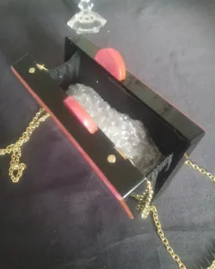 Bonito bolso en acrílico y concha nacar. Bonito bolso con letras. En acrílico y concha nacar17 CM de ancho x 10 CM de alto. 5cm de gruesoExcelente precioPREGUNTAR DISPONIBILIDAD