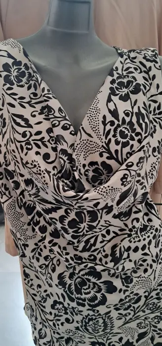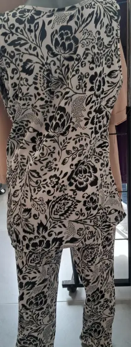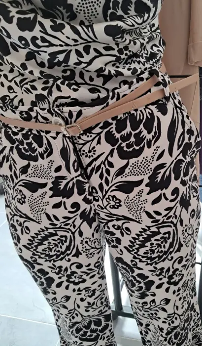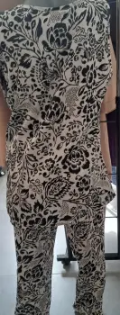 Hermoso conjunto de pantalón y blusa en tela ajustable , talla mediana, es cizado con cuello en v y tiene caída al frente