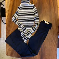 Blusa cuello de tortuga manga larga rayada blanco con negro y legging negro acampanado pretina ancha excelente licra nuevo con etiqueta