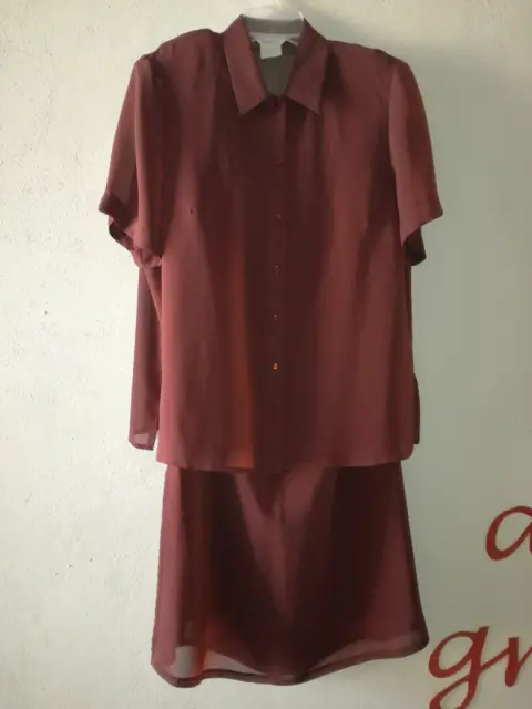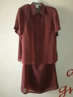 Color vino, elegante. La blusa tiene hombreras, abre al frente. La falda es larga hasta tobillos, con forro, cierre atrás. Talla 34/14.Precio a tratar.