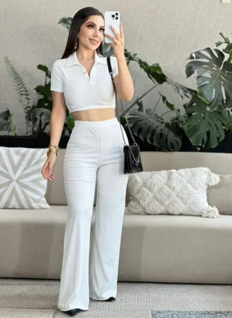 Conjunto. Lindo conjunto Tono blanco Talla ch -M Tela gruesa Nuevo
