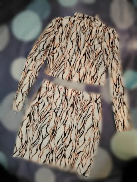 Conjunto. Conjunto mini falda blusa hombliguera mangas largas tela algodón ajusta a tu cuerpo