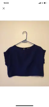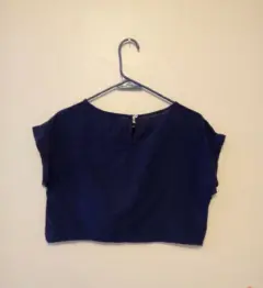 Conjunto azul. Conjunto pantalón y crop color azul marino, pantalón con cintura ajustable, tipo lino.