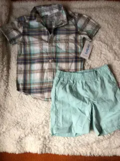 Conjunto Carter’sCamisa de cuadrosShort con elástico .Talla 2 A