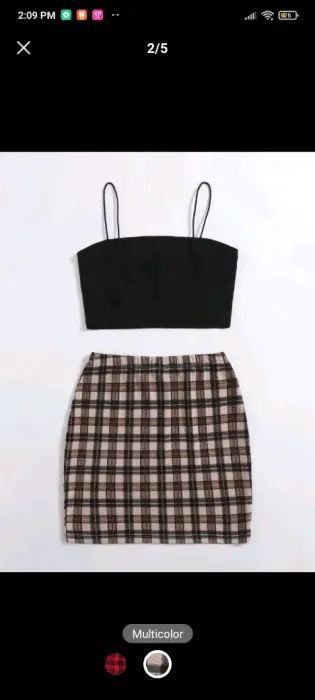 Conjunto con top y falda de cuadros. horma muy bonito solo que la falda se sube un poco