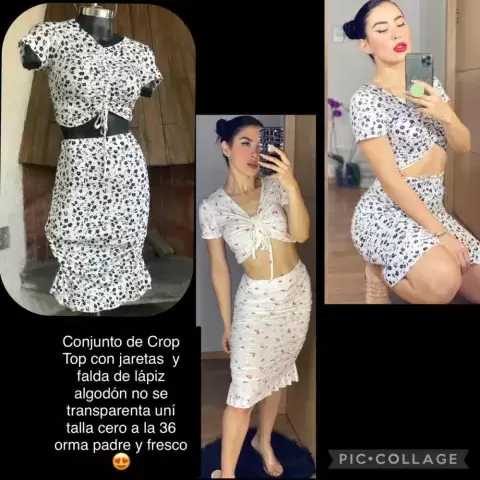 Conjunto de Crop Top con falda de lápiz algodón Spandex es delgado pero no se transparenta nuevo a estrenar uní talla queda para talla chica a mediana da hasta la 36 no va a estrenar y horma padrísimo