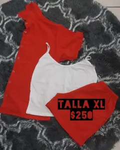 Conjunto de 3 piezas. Talla xlTop blancoShorts y saco rojo