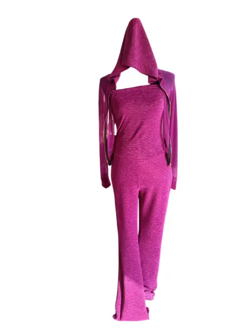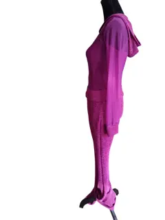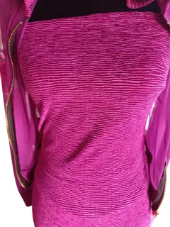 CONJUNTO DE 3 PIEZAS (SUDADERA,PANTALON Y TOP) COLOR FIUSHA, UNITALLA (QUEDA HASTA M) SUDADERA MESH MIDE DE HOMBRO A HOMBRO 36 CM, DE AXILA A AXILA 40 CM, DE LARGO 46.5 CM, TOP DE AXILA A AXILA 50 CM, DE LARGO 32.5 CM, PANTALÓN CORTE ACAMPANADO,TIRO ALTO,MIDE CINTURA 80 CM, DE CADERA 90 CM, DE LARGO 123 CM