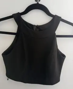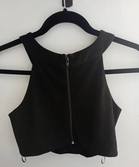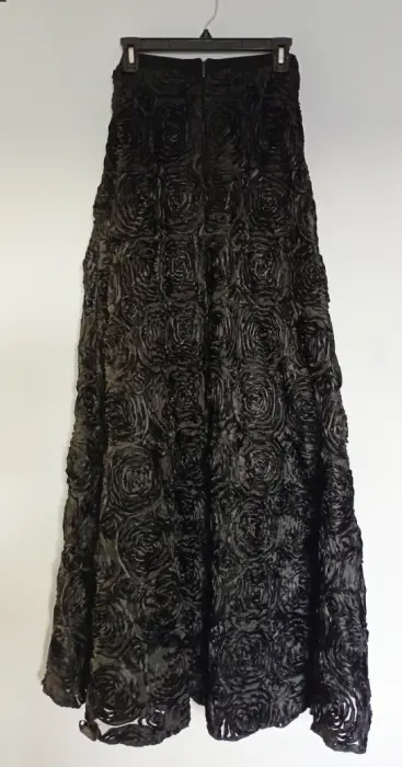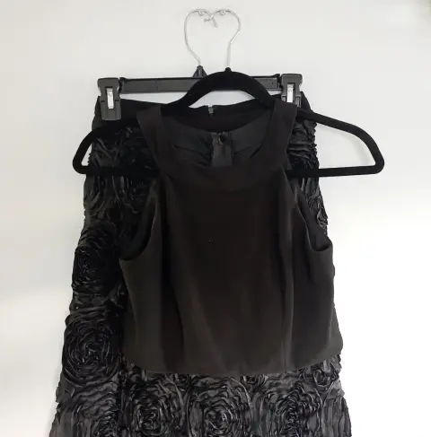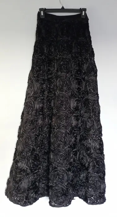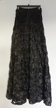 Hermoso conjunto de falda larga con flores y crop top negro ideal para fiestas (bodas, xv años, bautizo). El material de la tela y forro es 100% poliéster, talla 4 falda y top.