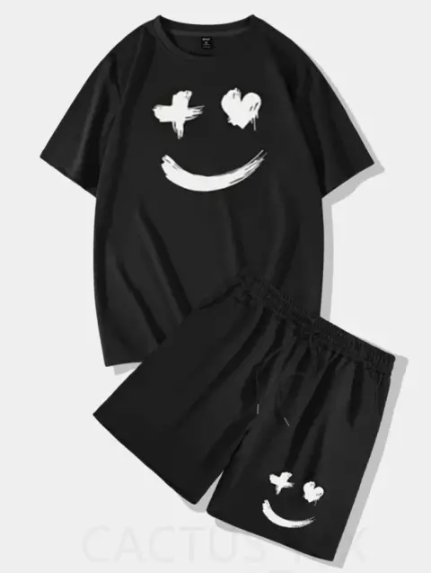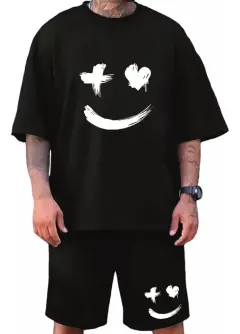 Conjunto de hombre playera y shortTela: poliéster Talla XLColor: NegroViene tal cual las fotos, la tela es muy suave.