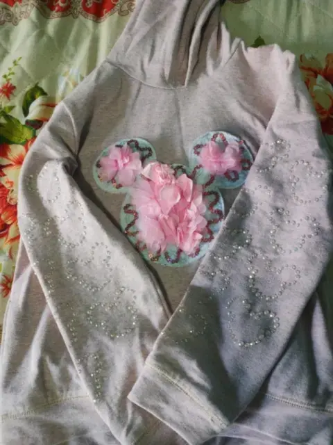 Muy buena tela con bolsas en la sudadera y el pantalón ,un diseño de Mickey el pantalón tiene resorte en la parte de arriba y la sudadera tiene gorra talla 10 -11