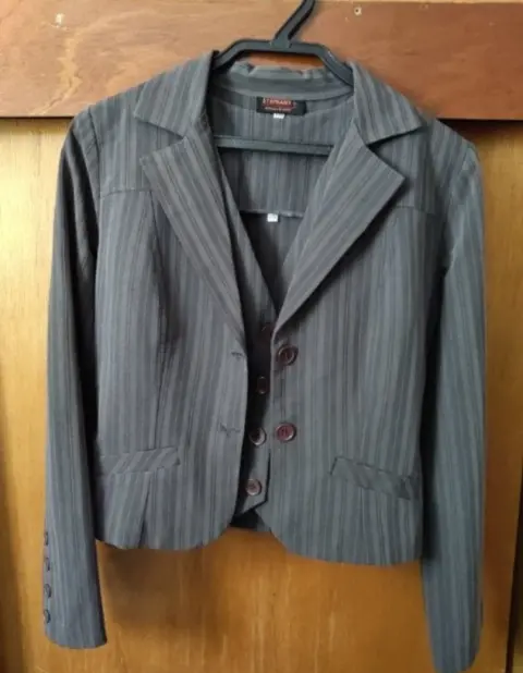 Conjunto de pantalon, chaleco y saco!!!. Hola, les encantara este conjunto de vestir, pantalon, chaleco y saco, ideal para ir a la oficina, o usar el chaleco y pantalon en una cita, colo gris con rayas rosas es muy coqueto, super moderno les encantara y aun super precio.. Si les gusta y se animan les regalo una hermosa blusa rosa q le va perfecto al traje