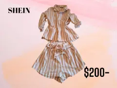 Conjunto de short y blazer marca shein. Color blanco con café claro a rayas Talla chica Muy fresco