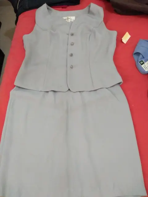 Conjunto de vestir, dama, chaleco y falda, talla: 11, color gris claro.