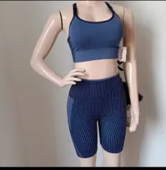 Conjunto deportivo, top y biker shorts.Color azul.Top con tirantes ajustables y espalda cruzada. Almohadillas removibles.Biker shorts cintura alta.Talla S.