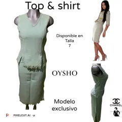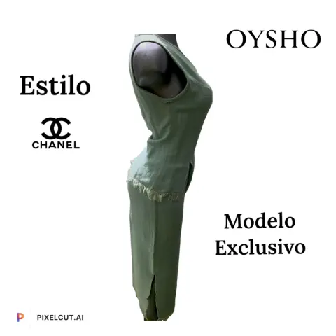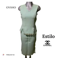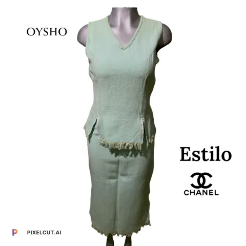 CONJUNTO ESTILO CHANEL. Hermoso conjunto estilo Chanel Marca OYSHOCOLOR AQUAFALDA CORTE MIDI CON ABERTURATOP SIN MANGAS FRESCO Y ELEGANTETALLA 7