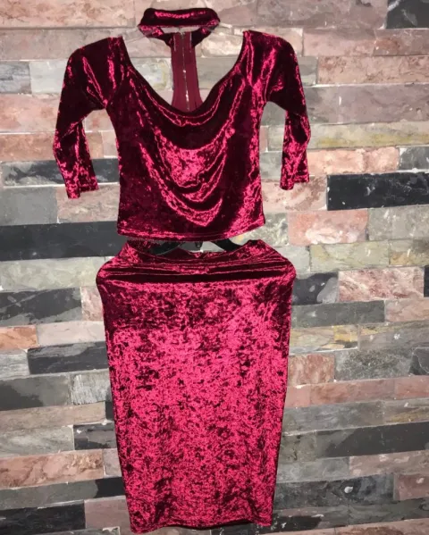 Conjunto falda tubo y blusa. Conjunto tono Borgoña o Burgundy 2 pzas. Falda tubo corte largo y blusa manga corta