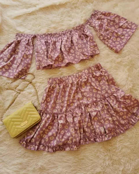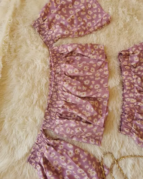 Conjunto flores XL. Bonito conjunto de falda con blusa corta manga suelta es nuevo talla XL pero viene reducido 1 talla 😊