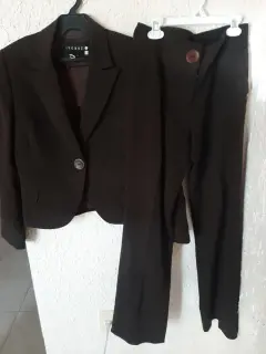 Conjunto 2 piezas saco corto y pantalón recto con bolsas casual muy juvenil en talla 6 28 color chocolate en perfectas condiciones