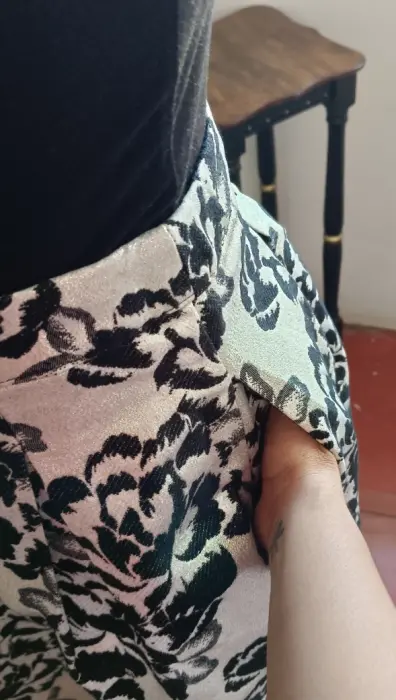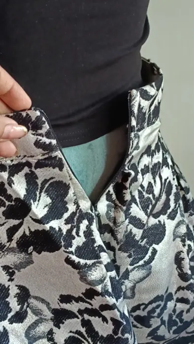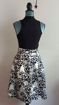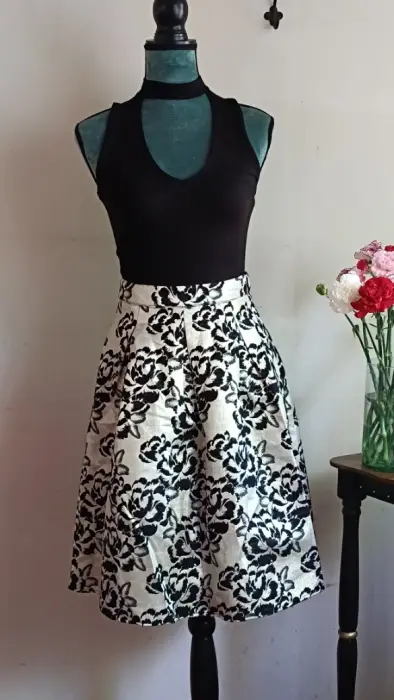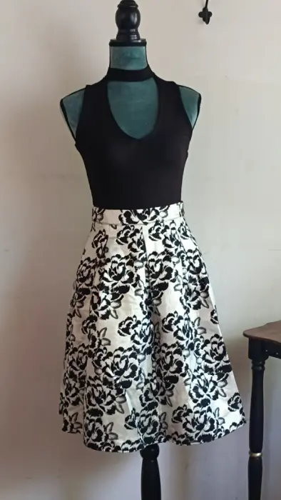 Falda elegante color plata con detalles de flores en negro, tela con brillo. Blusa bershka choker color negra. Ideal para las fiestas decembrinas. Talla S